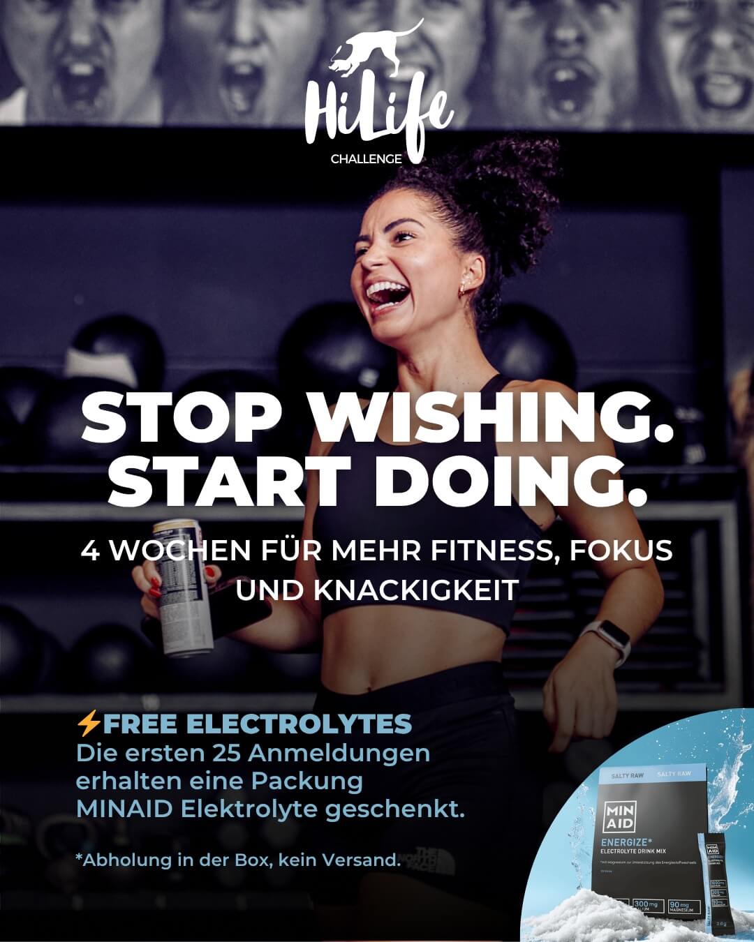 Die ersten 25 Anmeldungen erhalten eine Packung MINAID Elektrolyte gratis! (Abholung in der Box, kein Versand)